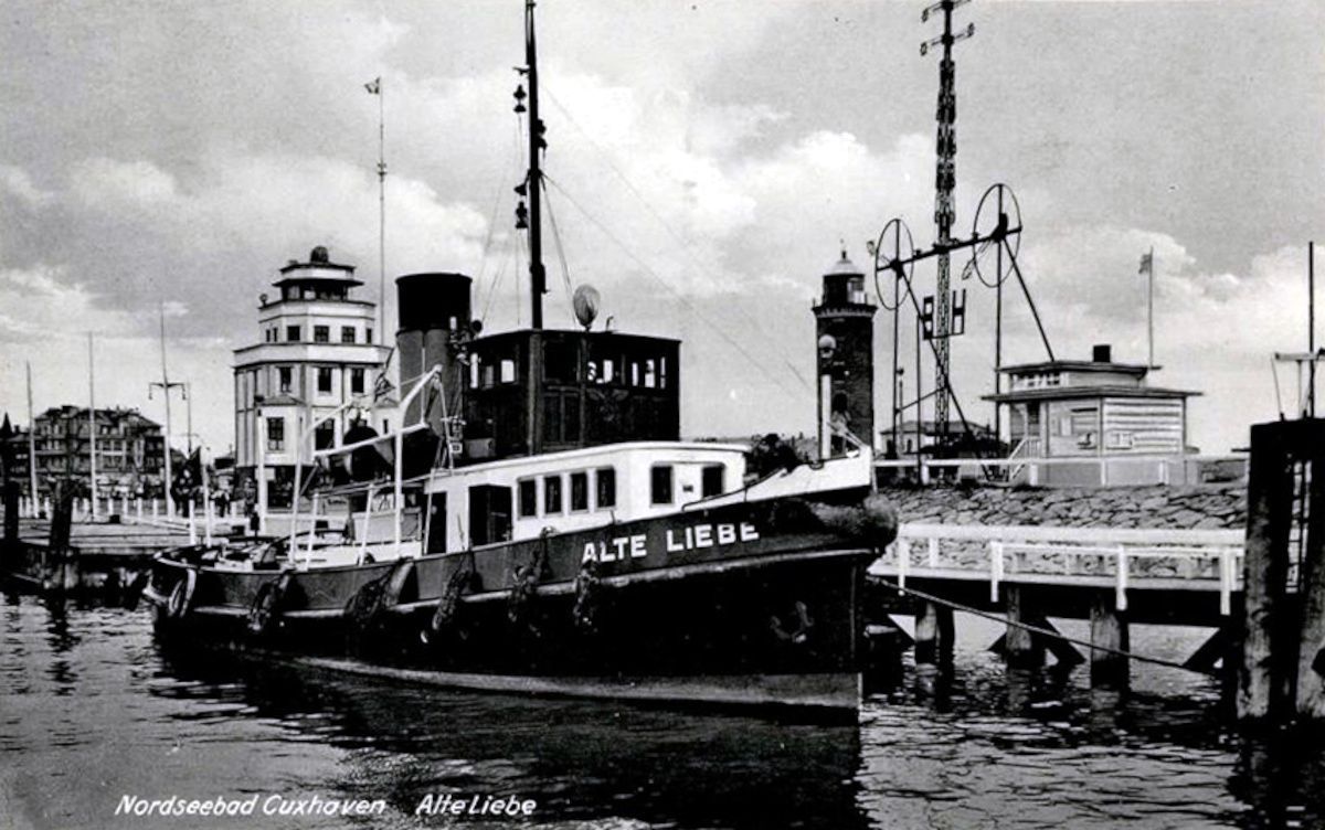 Schlepper "Alte Liebe" 1938 an der gleichnamigen Pier.