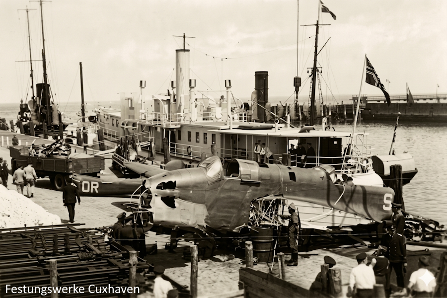 Am 30.06.1940 wurde bei Wesermünde ein britischer Bomber des Typs ‚Handley Page H.P.52 Hampden‘ von der Marineflak beschossen und stürzte ins Wattenmeer vor Spieka-Neufeld. Die Maschine wurde von der hier ortsansässigen Bergungsfima Taucher Otto Wulf geborgen und nach Cuxhaven gebracht. Das Flugzeugwrack wurde im Alten Hafen mit dem Kran der Beckmannwerft entgeladen und mit Militärlastwagen zur Untersuchung abgefahren. Bei der Maschine handelte es sich um