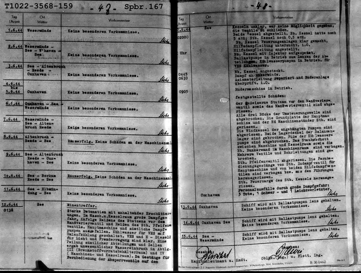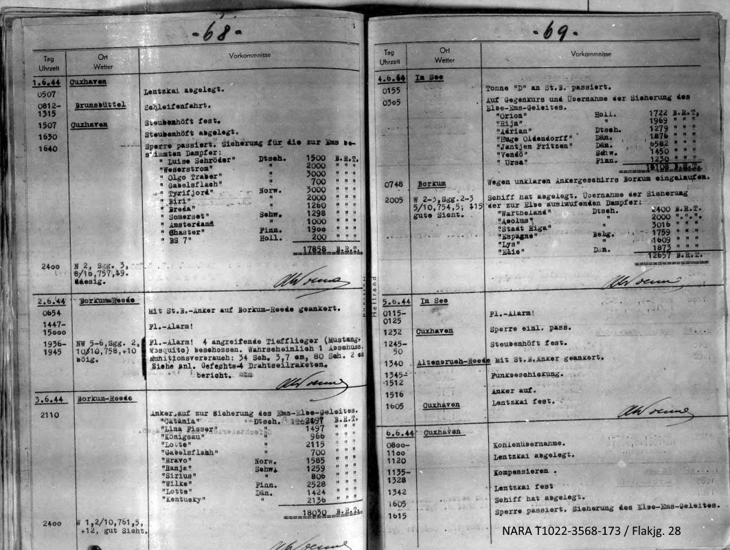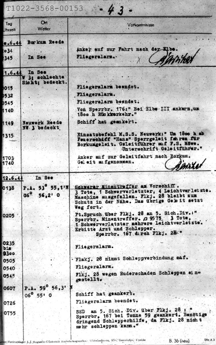 Auszüge aus den Kriegstagebüchern 1943 / 1944, 1. Sperrbrecherflottille Cuxhaven