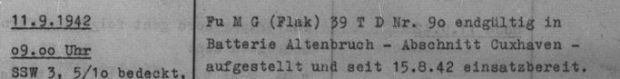 Neben dem allgemeinen Luftschutz des Reichsgebietes war es ihre besonders exponierte Lage, die zum Schutz der Schleusen Brunsbüttel, der Stadt Cuxhaven, den Geleitzügen und Sperrbrechern welche die Elbe befuhren, beitrug.