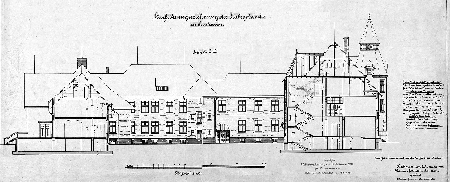Das "Stabsgebäude" der kaiserlichen Marine Cuxhaven.