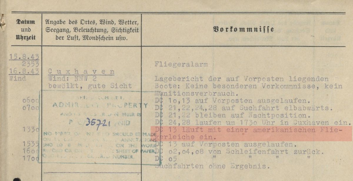 Während der Kriegstätigkeit im Abschnitt Cuxhaven, wurden immer wieder alliierte Kampfflugzeuge durch Flakbeschuß oder deutsche Jagdflieger zum Absturz gebracht. Oftmals kam es dabei zum Totalverlust der Maschine, was meistens den Tod von Teilen oder auch der gesamten Besatzung bedeutete. Neben Abschüssen über dem Festland kam es natürlich auch zu Abstürzen oder Notwasserungen im Wattenmeer, vor der Küste oder auf dem Meer. Wenn der Seerettungsdienst oder vor Ort anwesende Schiffe allerdings nicht umgehend eine Rettung einleiten konnten, kamen die Besatzungen durch Ertrinken, Erfrieren oder erlittener Verletzungen meistens ums Leben.