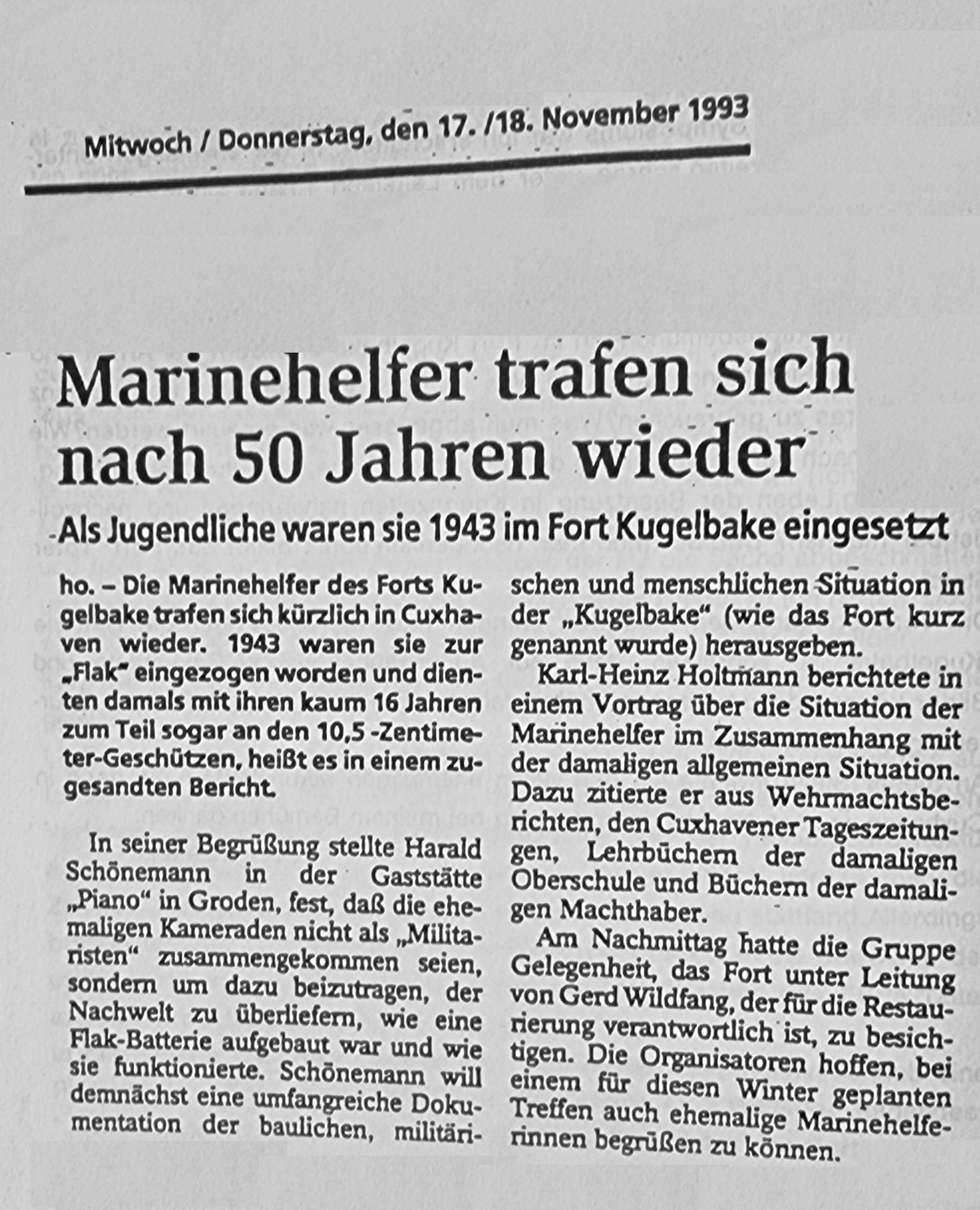 Aus dem Heft "Marinehelfer der Batterie Kugelbake" von 1995