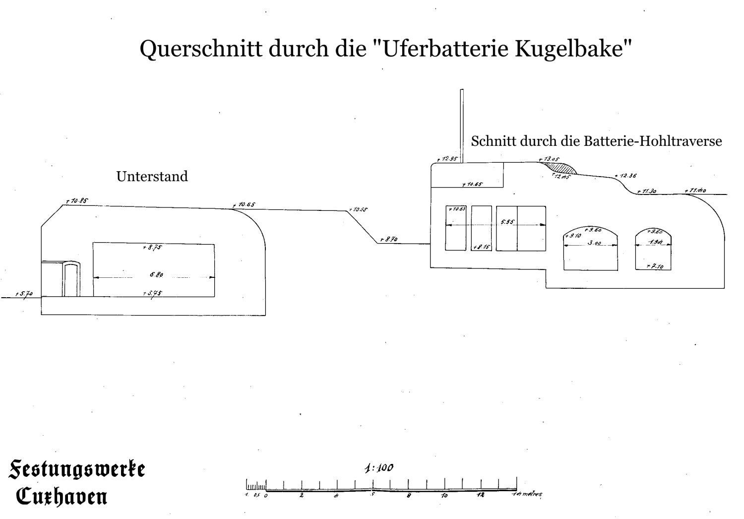 Fort Kugelbake und war rückseitig in den Deich gebaut. Erstellt wurde sie 1889, in den Jahren 1996 - 1898 und noch einmal 1907 erfolgten Umbauten. Ihre Aufgabe war die artilleristische Unterstützung des Fort Kugelbake mit ihren Schnellfeuerkanonen von dieser Stelle aus quer über das Fahrwasser der Elbe hinweg.