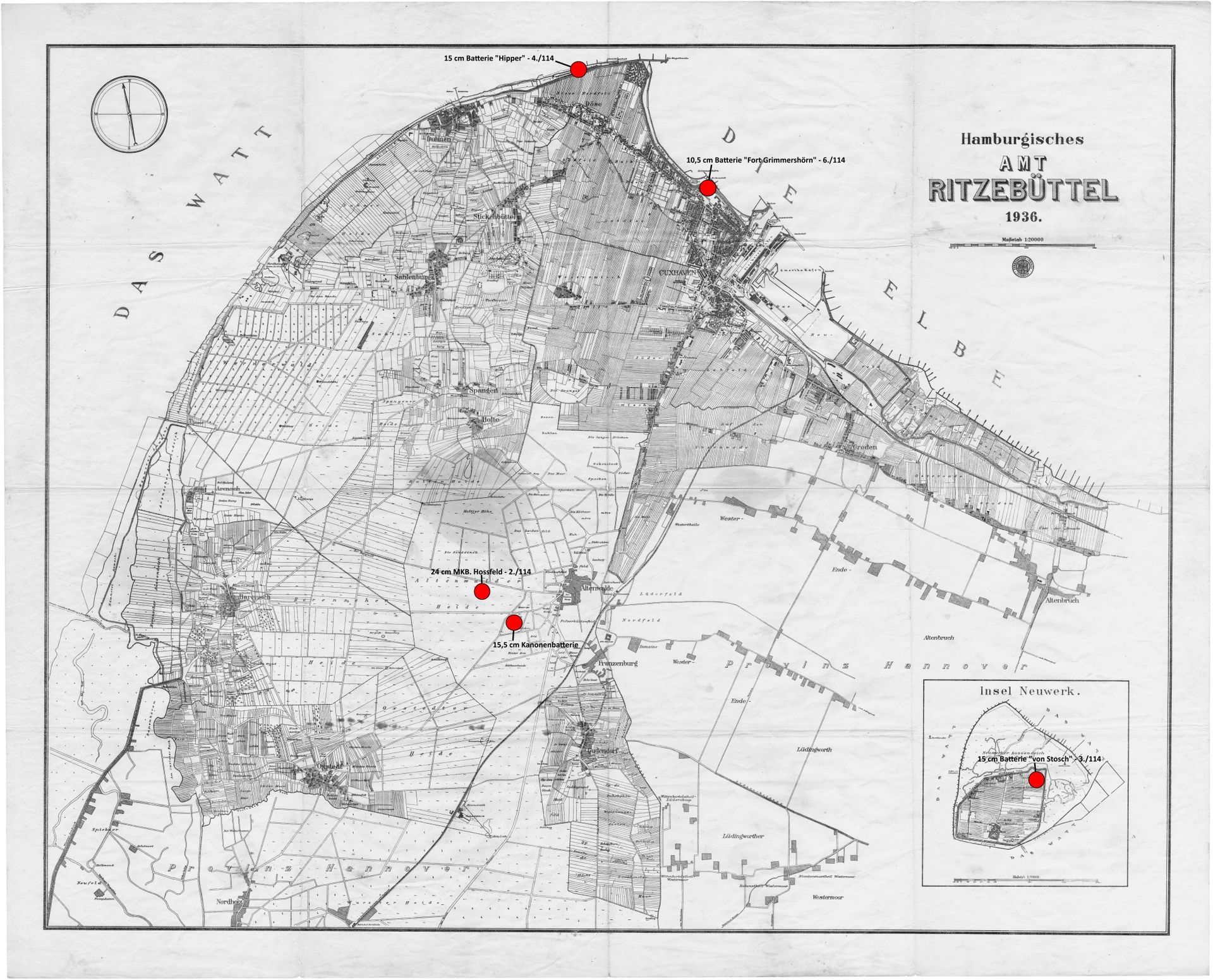 (0003) - Pos 6. Duhnen = Flakschule Duhnen/Steinmarne, Pos 10. Left Aussendeich = Batterie Hipper (Artillerie)