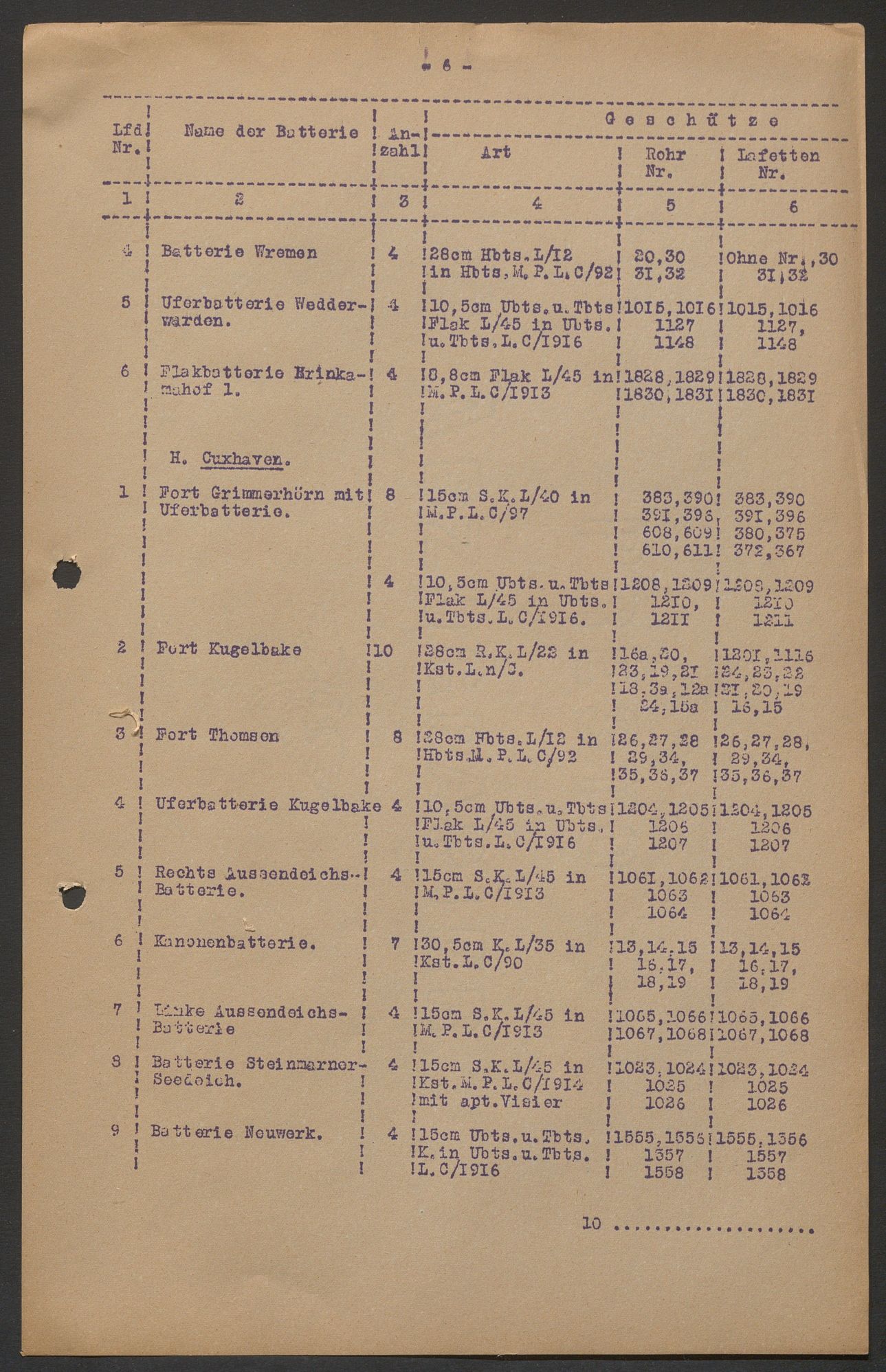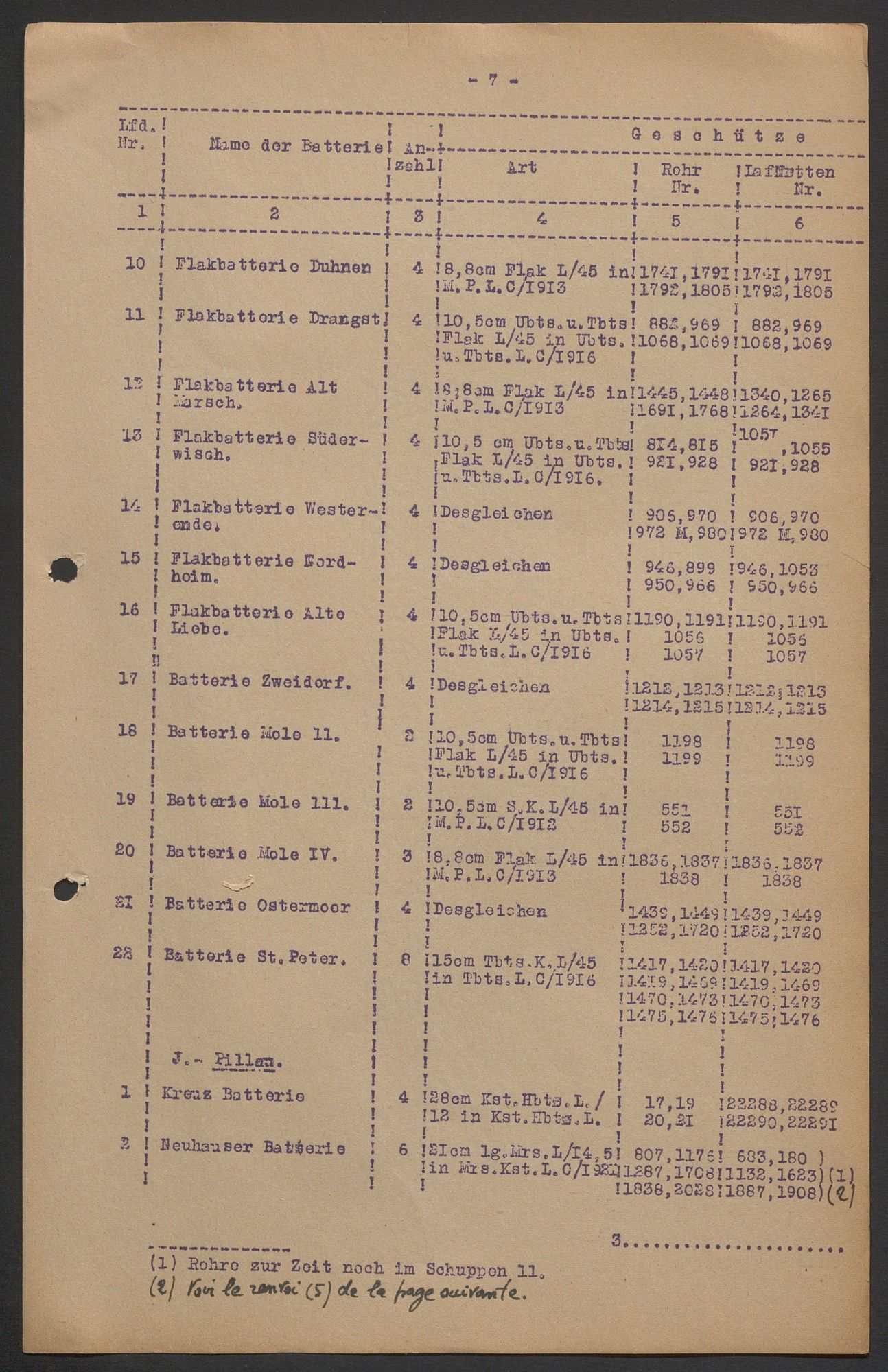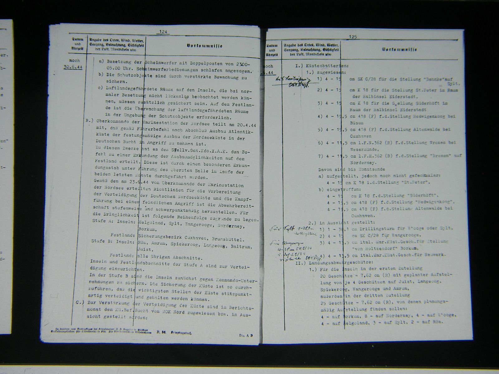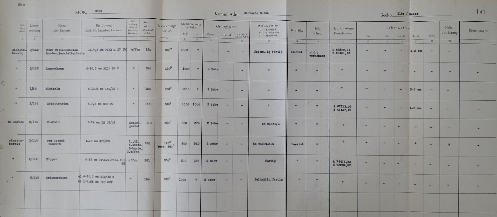 Bericht des MOK-Nord über den Ausbauzustand der Cuxhavener Marine-Artilleriestellungen, Stand Ende 1944.