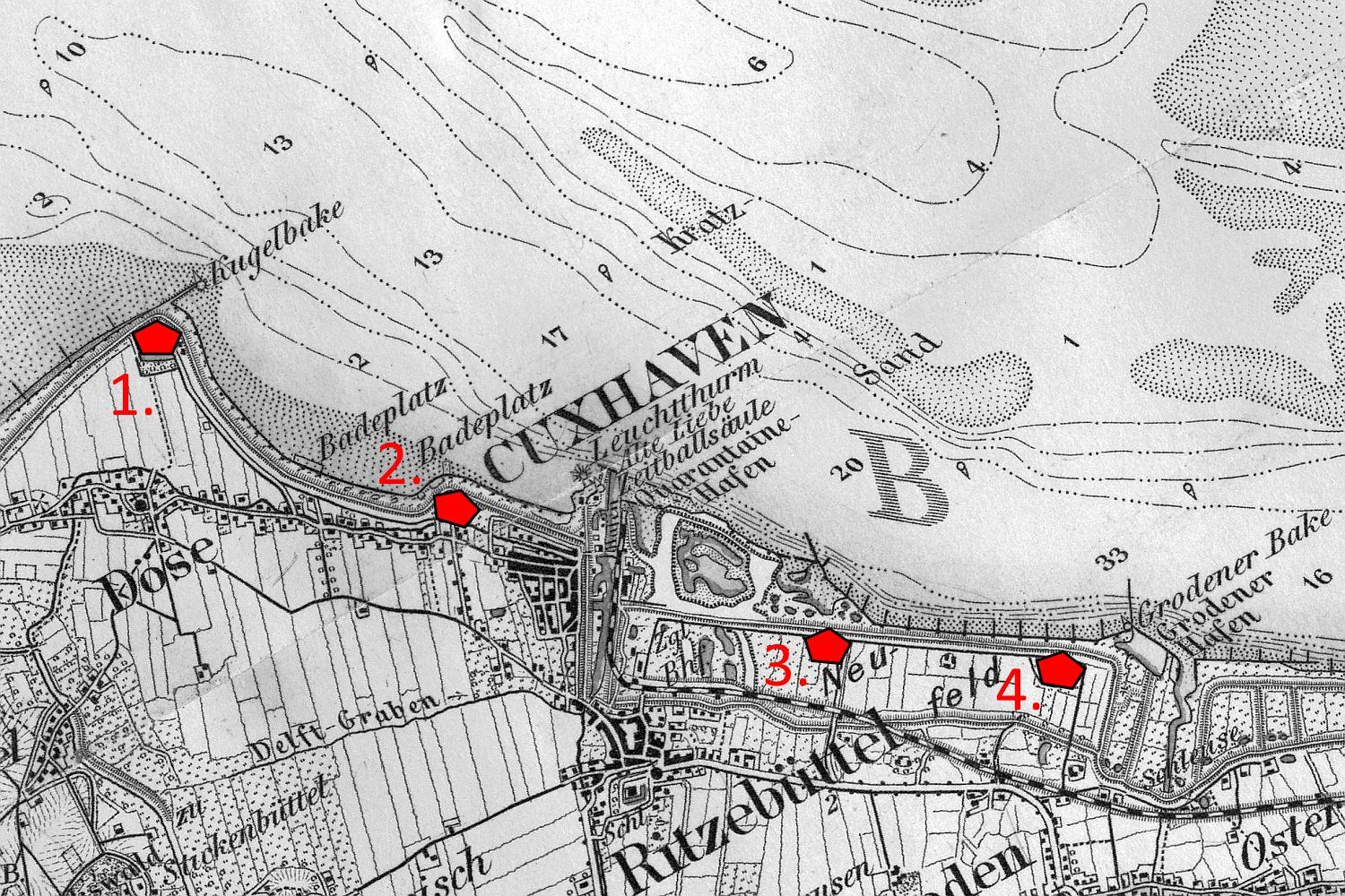- 1. Juni 1848 - Forderung nach einer Küstenbefestigung an dem besagten Ort, auf dem Marinekongress in Hamburg.