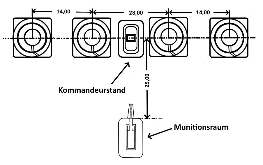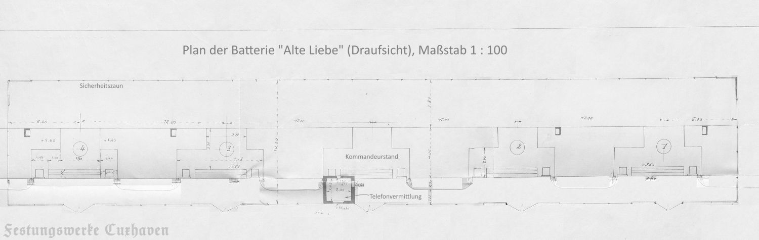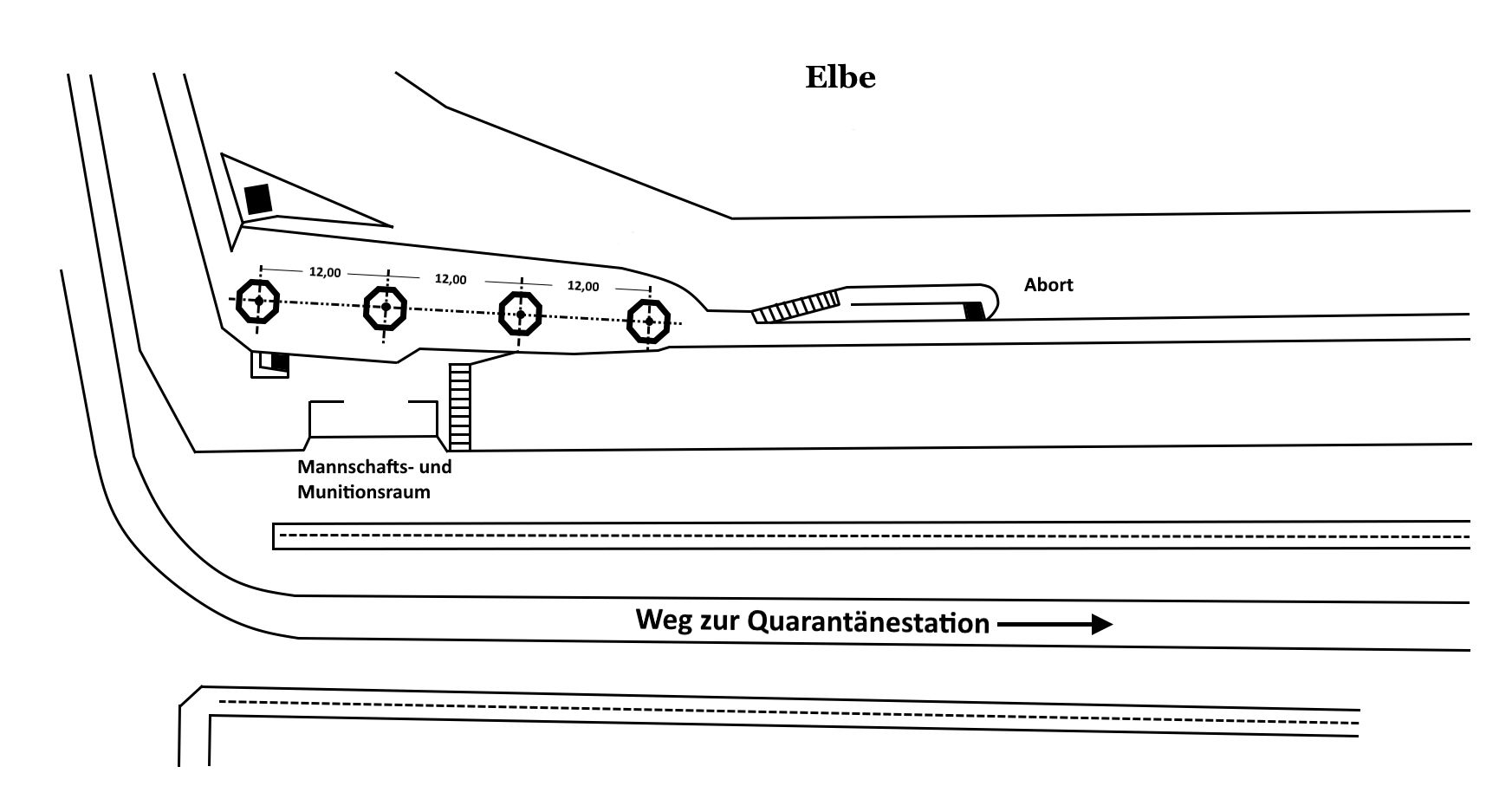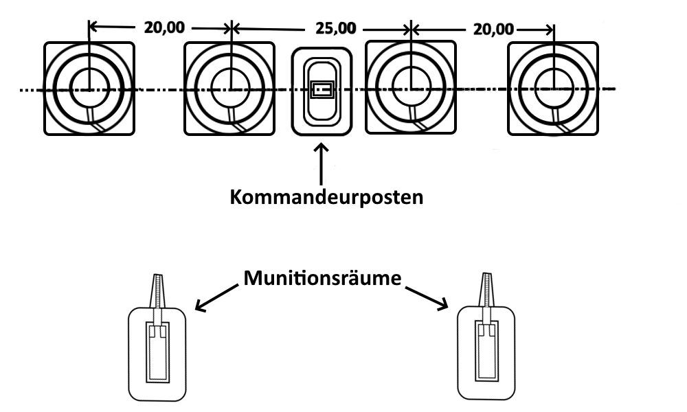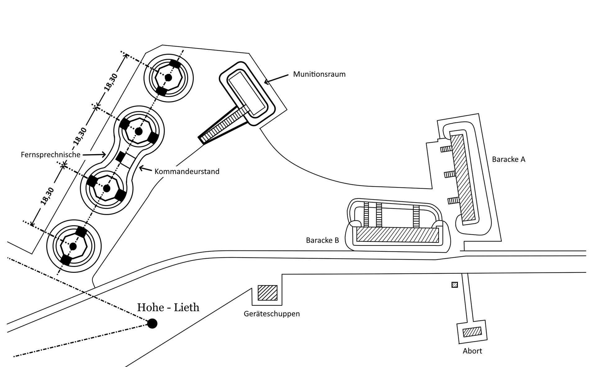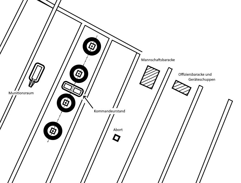 Die in einer Linie mit einem Abstand von 15 Metern aufgestellten Geschütze lagen etwas erhöht, so das ein Beschuss gegen Seeziele möglich gewesen wäre.