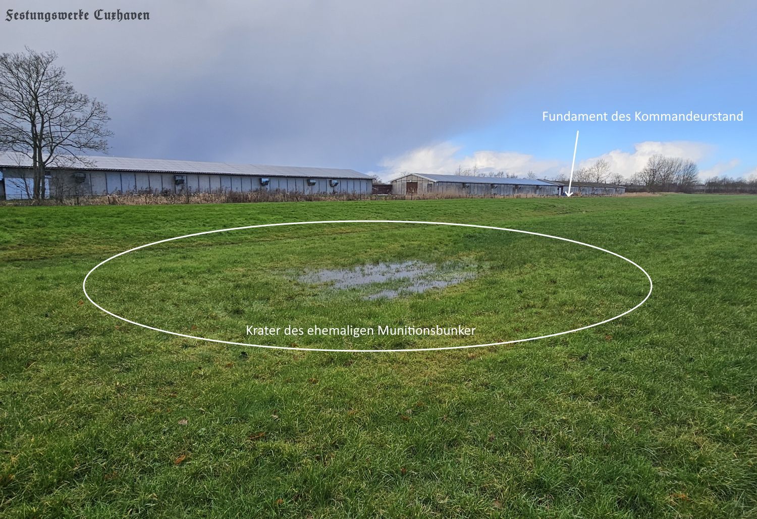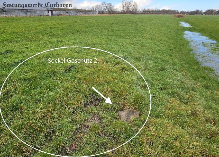 Seebanndeich zum "Neuen Felde" hin abging. Gleich daneben befand sich das auch um die Zeit gebaute "Minendepot Groden". Schräg gegenüber befand sich im zweiten Weltkrieg die Flakbatterie "Schantung-Pollux". Reste der Stellung aus dem ersten Weltkrieg sind heutzutage nicht mehr zu erkennen, inzwischen befindet sich an dieser Stelle ein Lagerplatz für Restholz.