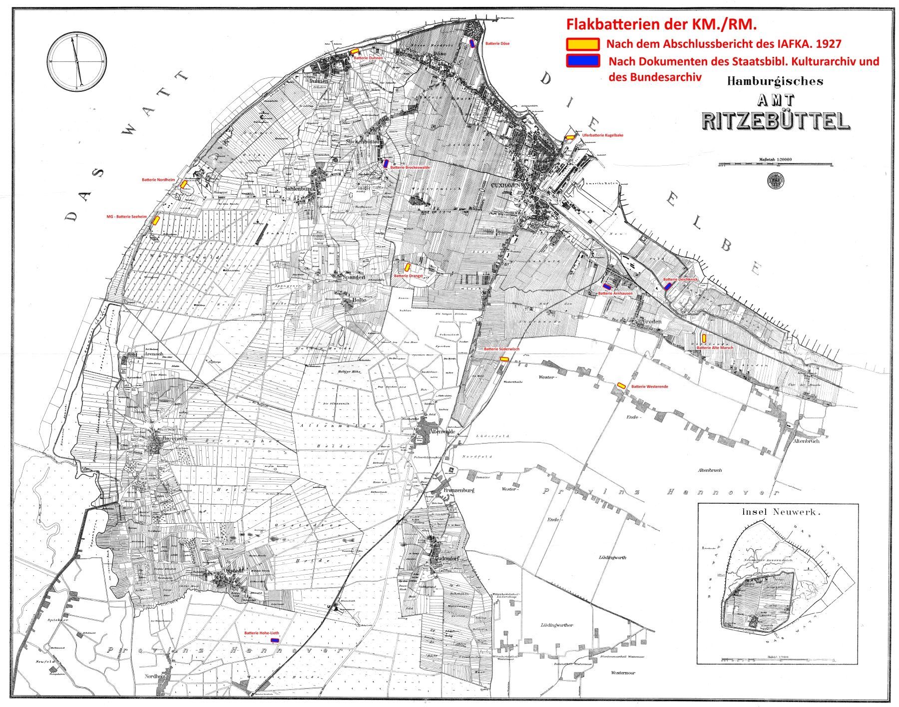 Während des Krieges sollen laut Dokumenten 12 schwere Flakbatterien im heutigen Cuxhavener Stadtgebiet aufgestellt worden sein. Zu Kriegsende waren davon allerdings nur noch 7 aktiv gewesen. Sie werden nachweislich im Abschlussbericht des Interalliierten-Friedens-Kontrollausschuß von 1927 beschrieben, stellenweise findet man davon auch noch Überreste. Die 5 weiteren Stellungen werden noch in Unterlagen der Staatsbibliothek Preußischer Kulturbesitz in Berlin und dem Bundesarchiv erwähnt. Allerdings gibt es darüber keinerlei wirklich nachvollziehbare Hinweise wie Berichte, Fotos oder Fragmente verbliebener Fundamentreste. Eventuell handelte es sich hierbei auch nur um Planungen, die nie verwirklicht wurden.
