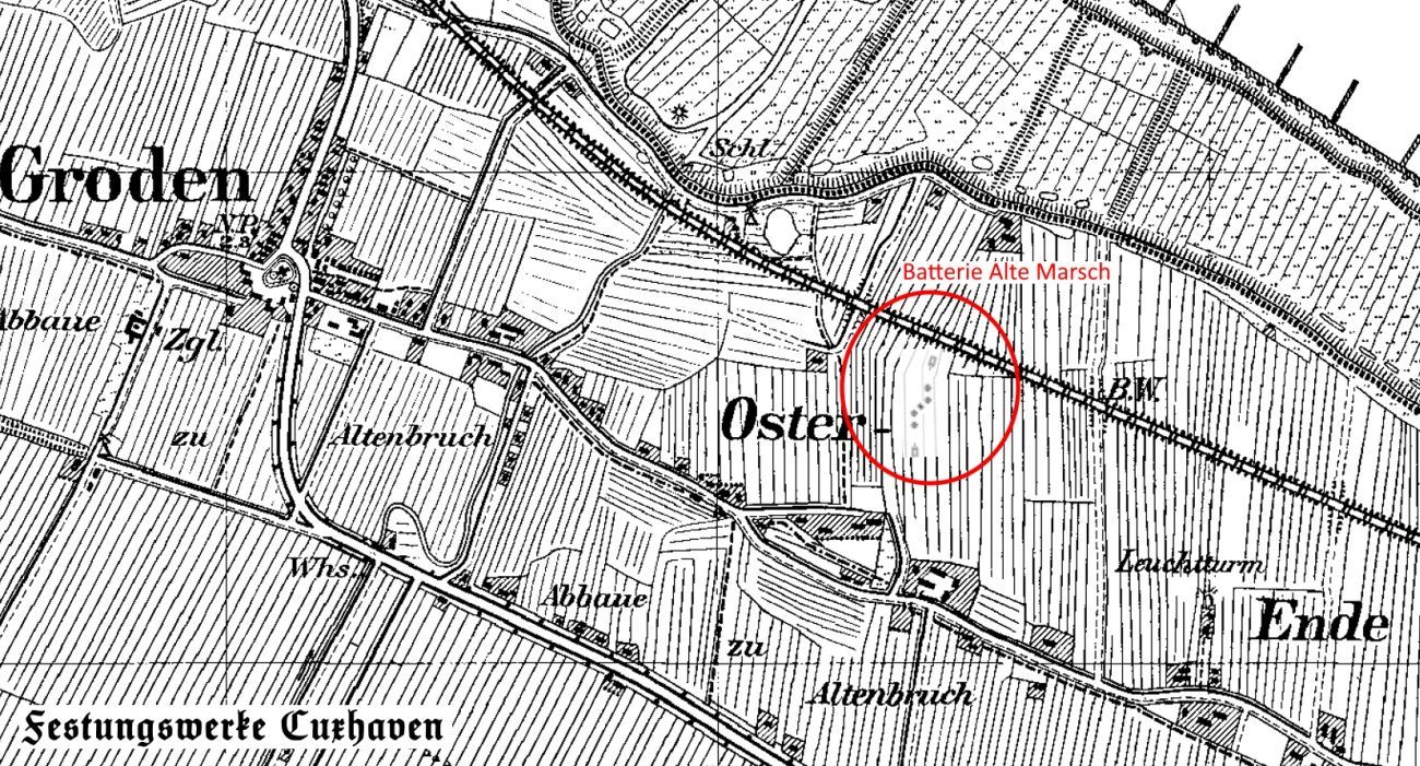Die Stellung lag im Ortsteil Altenbruch südlich der Bahnlinie und nördlich der Grodener Hörn