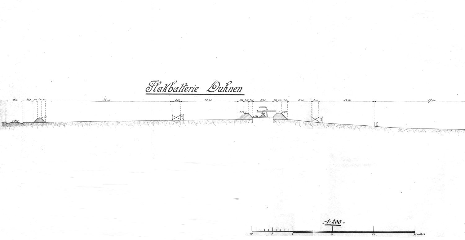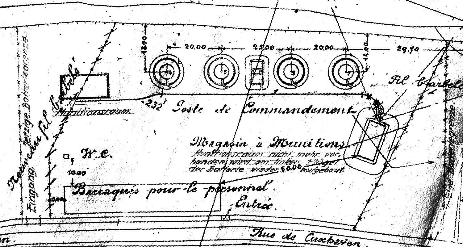 Auf einem vorliegenden Lageplan des Bundesarchivs von 1917 bestand eine Flakbatterie für vier Geschütze