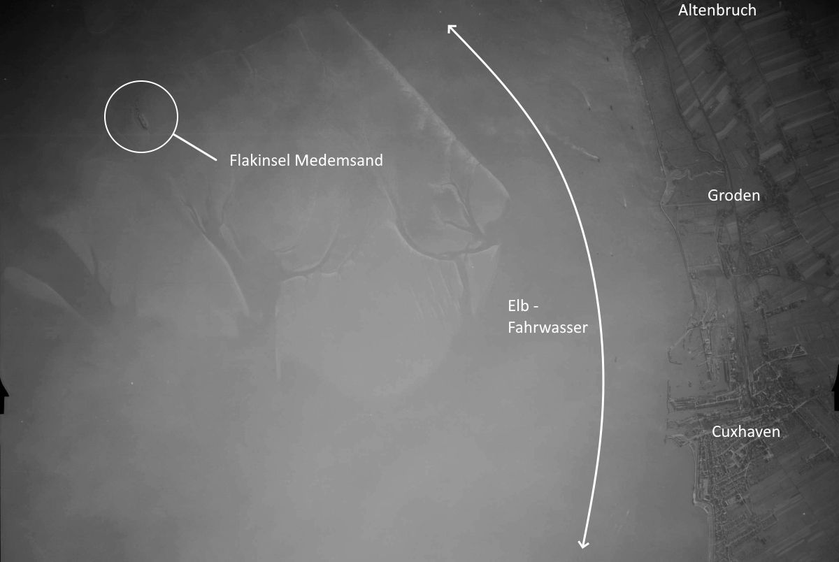 Nymphe als Flakschutz verankert. Zeitgleich aber waren bereits Arbeiten zum Bau einer künstlichen Insel auf der Sandbank "Medemsand" begonnen worden, um hier einen dauerhaften Schutz gegen Tiefflieger zu errichten.