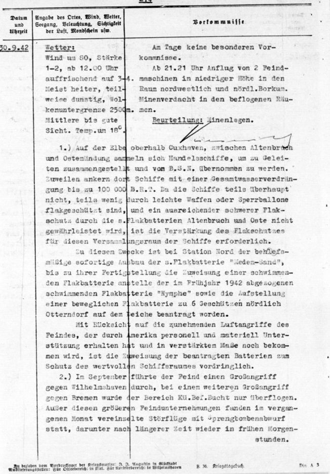 Altenbrucher Reede auf der Elbe vor Cuxhaven war während des zweiten Weltkriegs ein Sammelpunkt, für von dort aus startende deutsche Geleitzüge. Vor Luftangriffen wurden die dort in Warteposition vor Anker liegenden Schiffsverbände größtenteils durch Boote der 4./ Hafenschutzflottille. Hinzu kamen dann noch die sie auf den Geleitwegen begleitenden Vorpostenboote und Flakjäger. Von Land aus bestand ein gewisser Schutz nur durch die Marineflakbatterien Altenbruch und Groden, wobei sich der Deich bei einer Abwehr gegen sehr tief fliegende Feindflugzeuge als hinderlich herausstellte.
