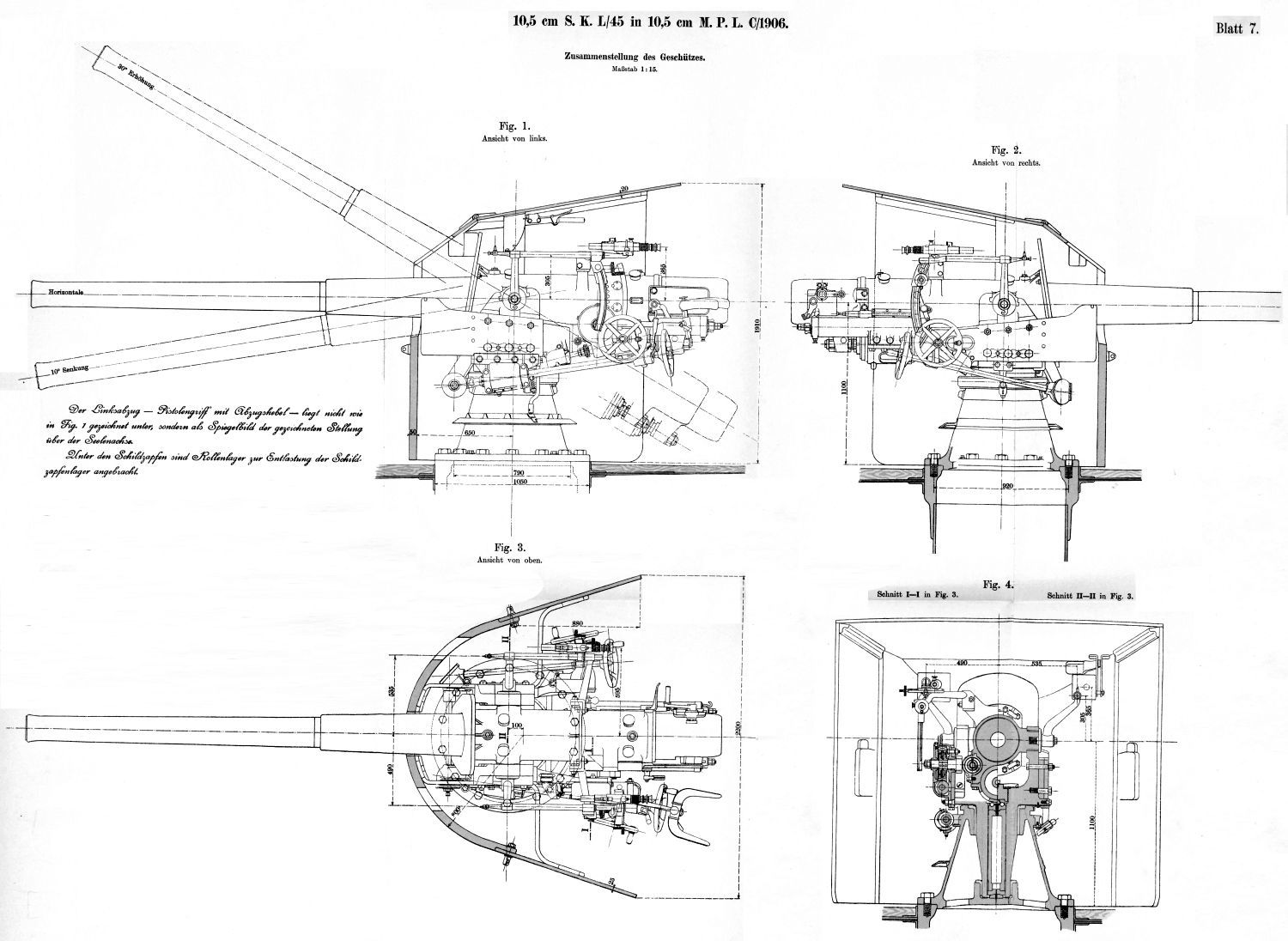 10,5 cm Schnellfeuerkanone SK L/45 in Mittelpivotlafette