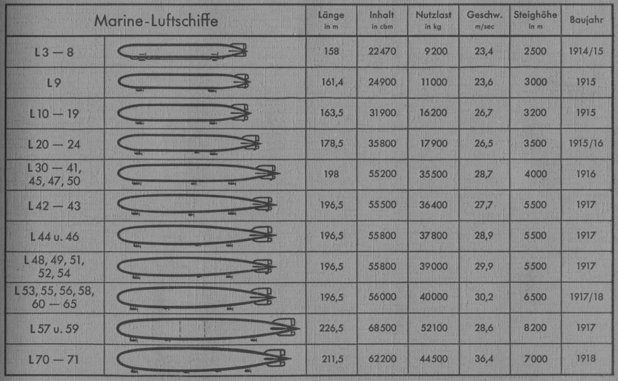 Insgesamt waren in dieser Zeit 42 Zeppeline auf dem Marineluftschiffhafen stationiert, die aber nie alle gleichzeitig vor Ort waren.