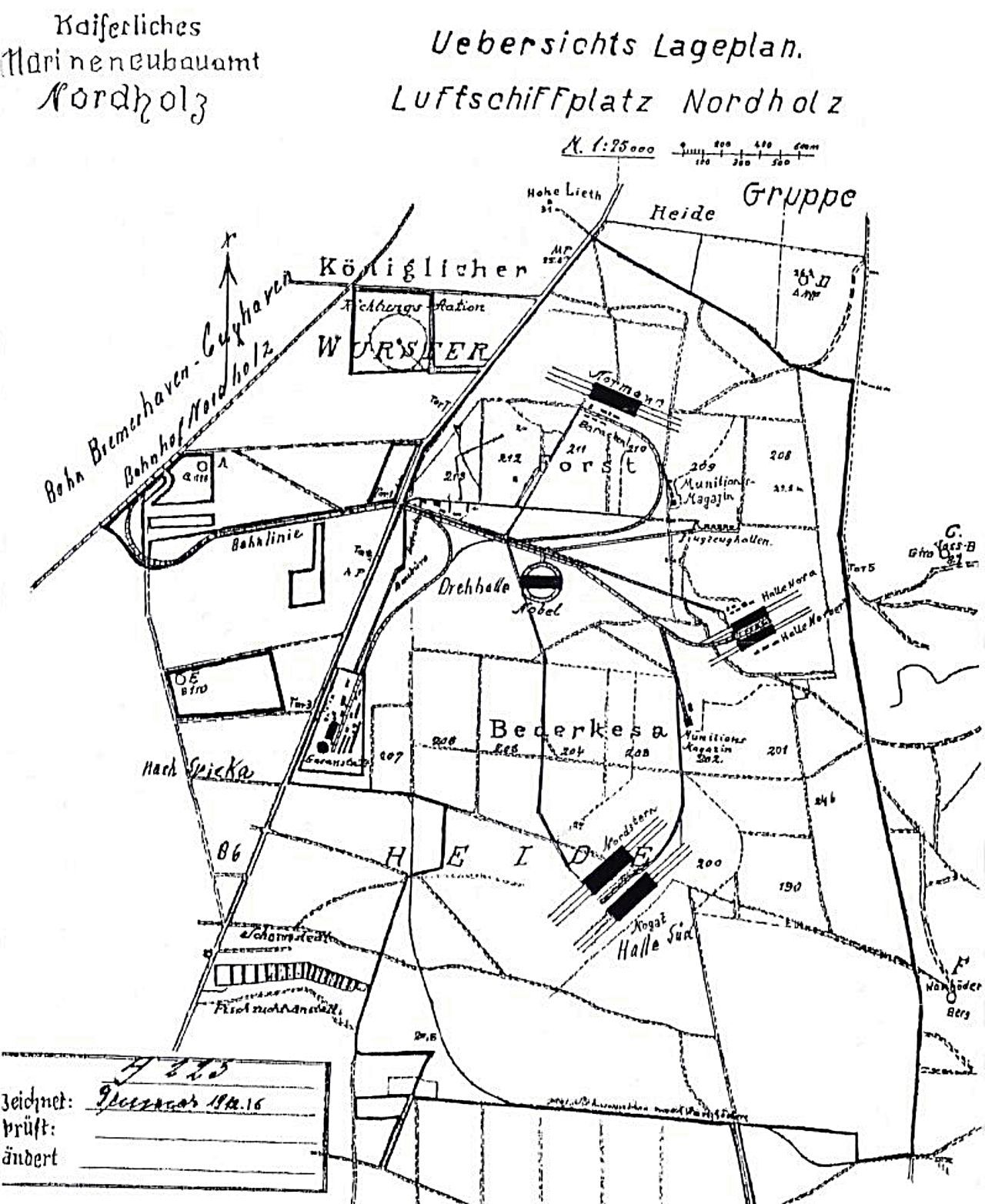 Am 11. April 1913 wurde vom Marinehafen-Bauamt Cuxhaven die örtliche "Bauleitung Luftschiffplatz" abgezweigt und dem späteren "Marinebauamt Nordholz" unter Marinebaurat