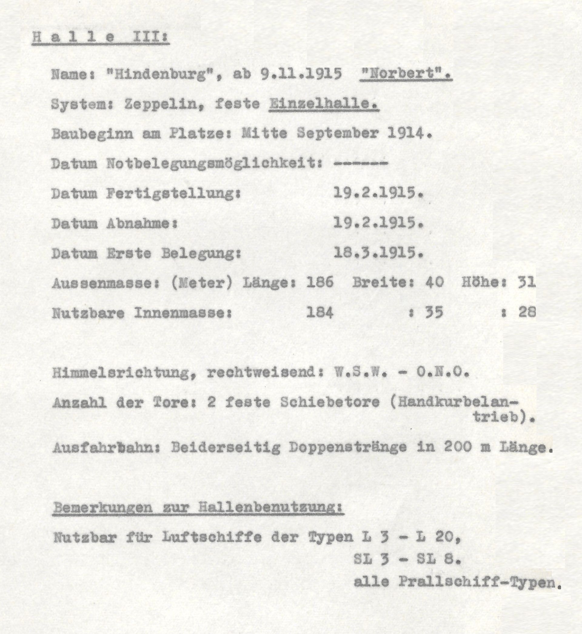 | Nordholz | Hindenburg | 31.12.1915 | Feste Einzelhalle | 184 x 35 x 28 | fertig, ab 09.11.1915/Norbert |