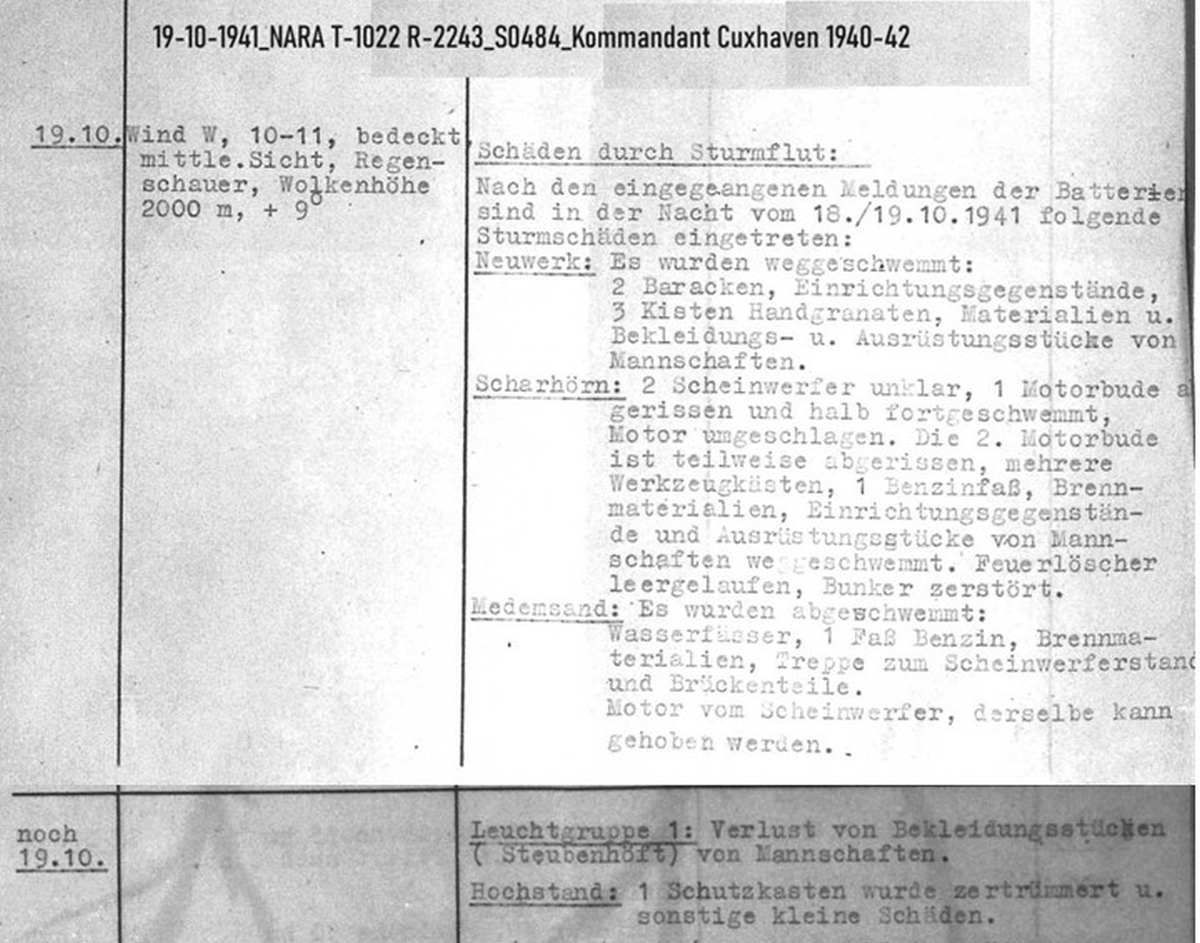 Zur Zeit des ersten Weltkriegs errichtete die Kaiserliche Reichsmarine im Außendeich der Insel in Lage des