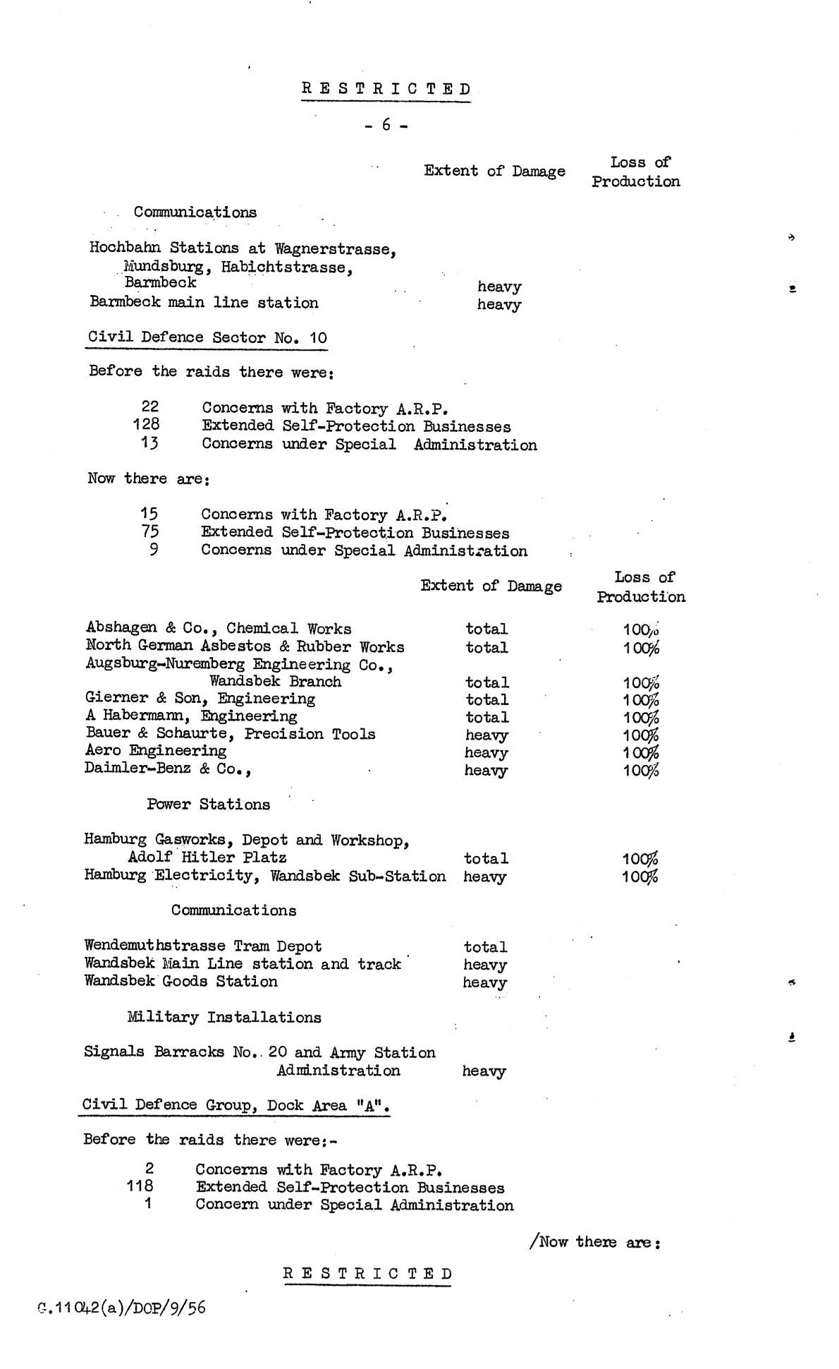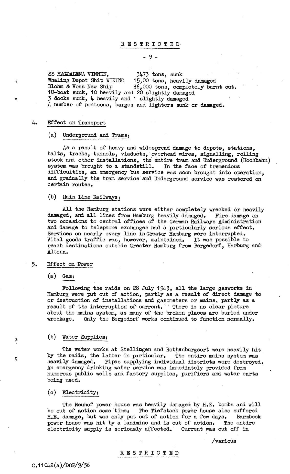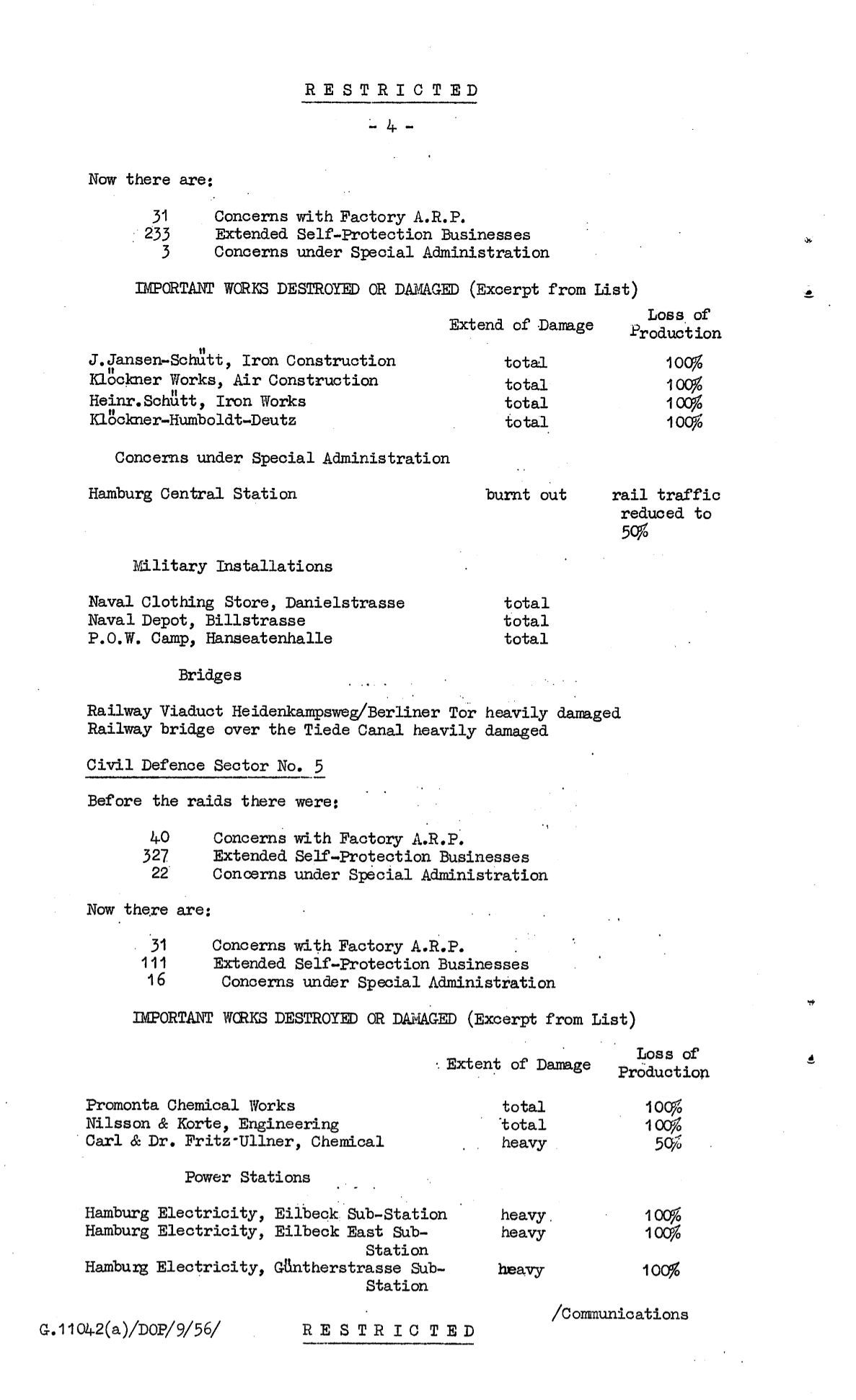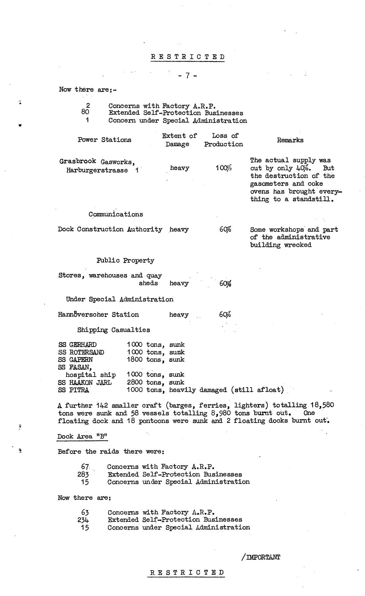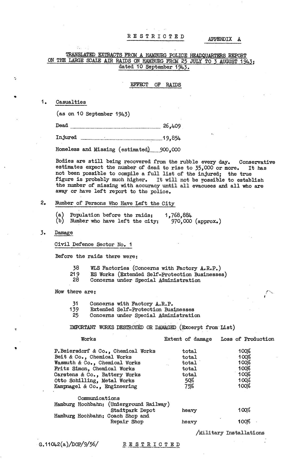 Die schweren Angriffe auf Hamburg im Juli/August werden im Hauptteil des Dokuments nicht dargestellt. Sie wurden in einem anderen Bericht (CD.706a) nach ARP/CD-Aspekten (Air Raid Precautions) behandelt.