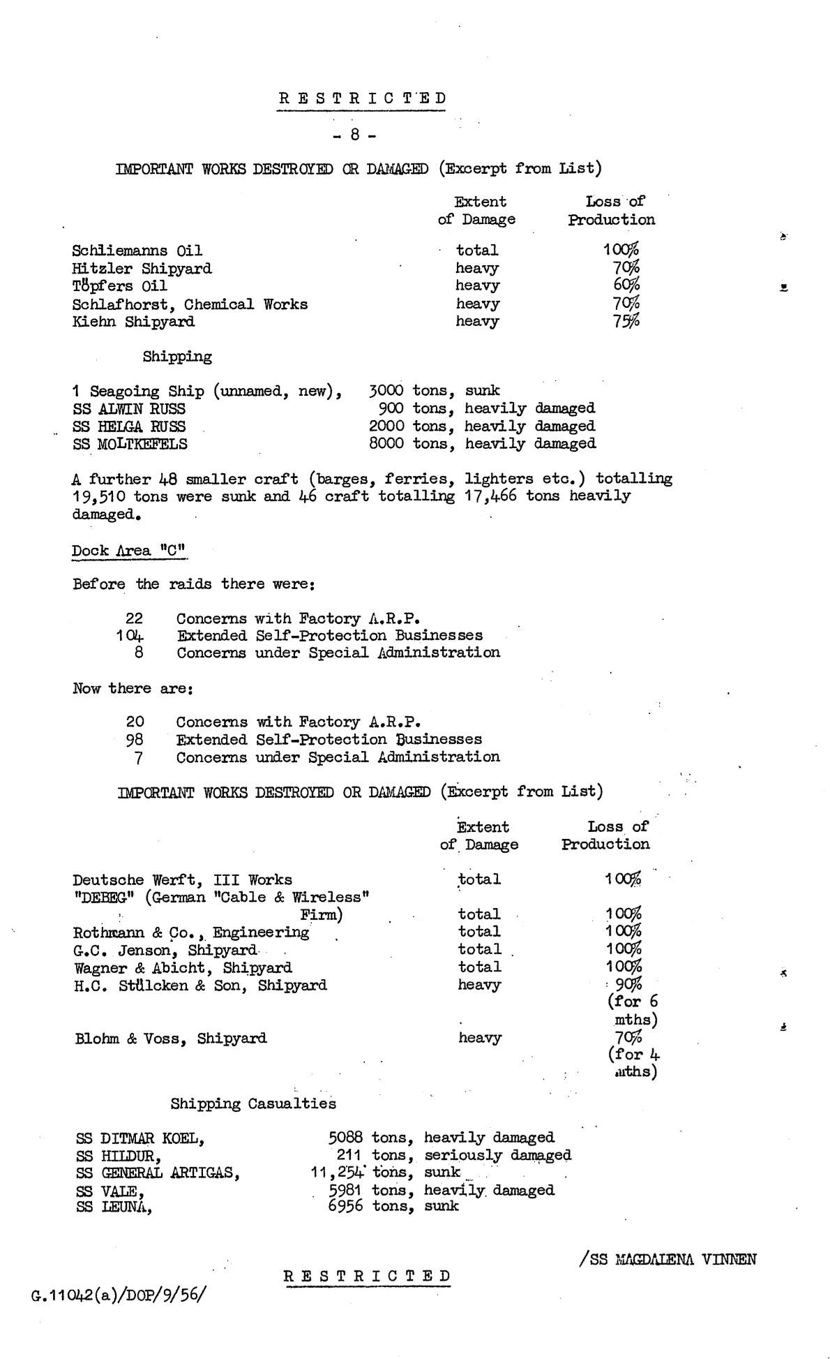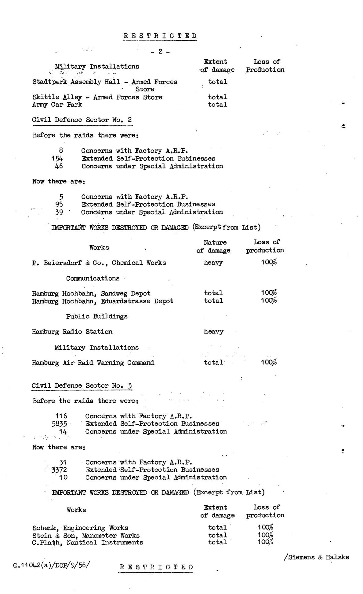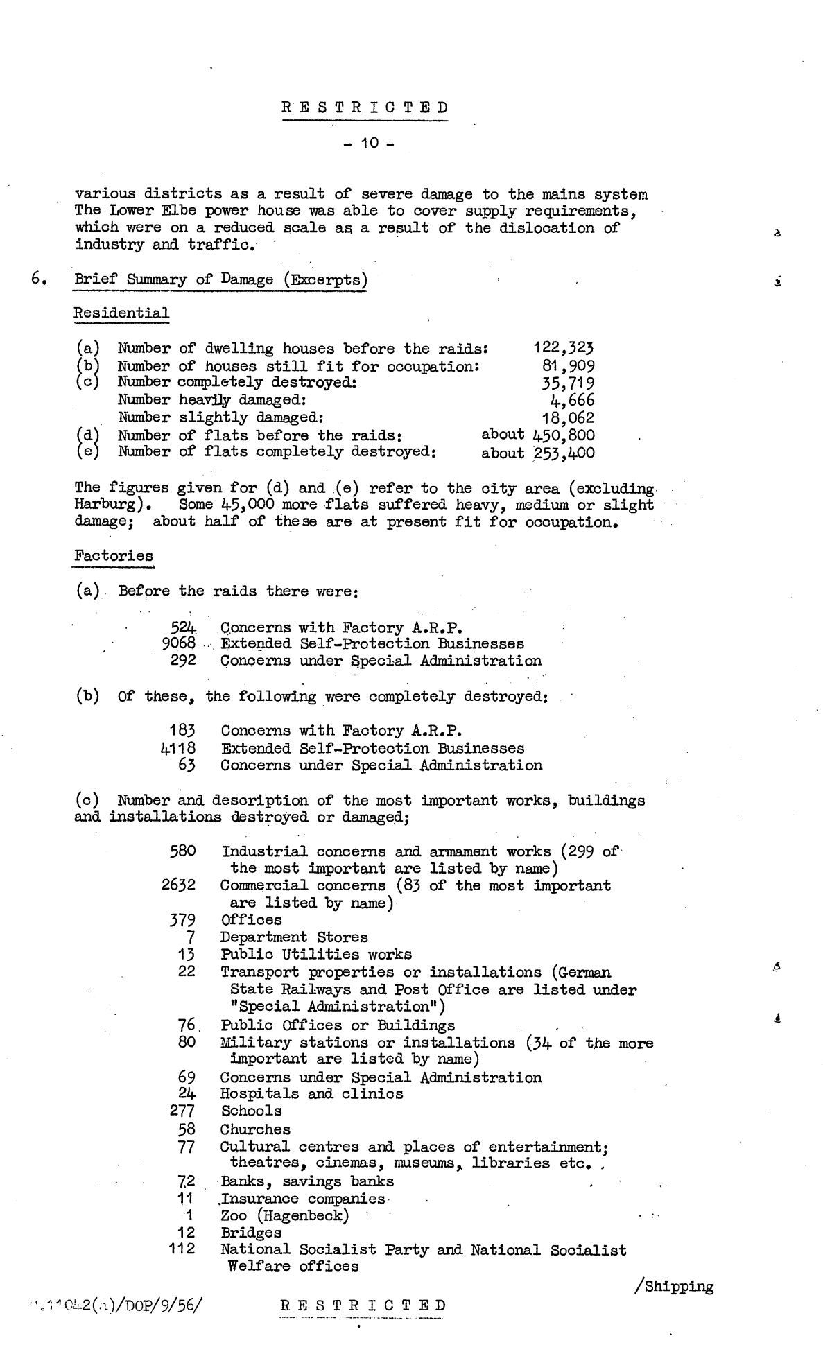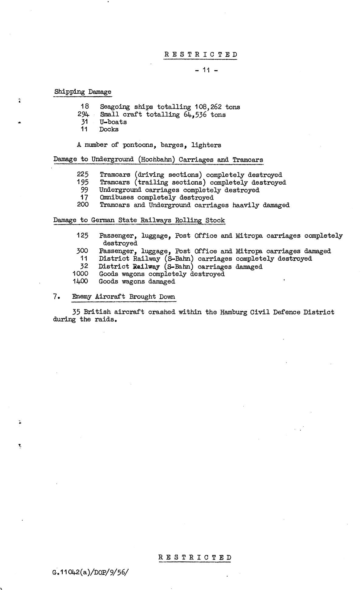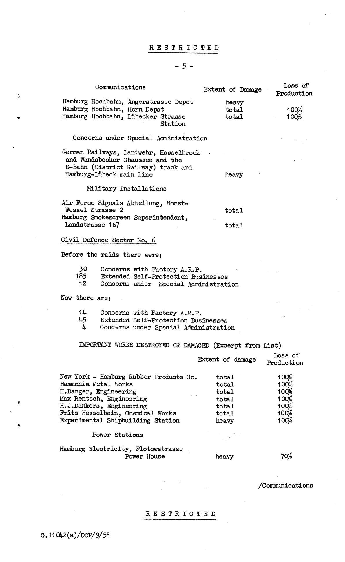 Die schweren Angriffe auf Hamburg im Juli/August werden im Hauptteil des Dokuments nicht dargestellt. Sie wurden in einem anderen Bericht (CD.706a) nach ARP/CD-Aspekten (Air Raid Precautions) behandelt.