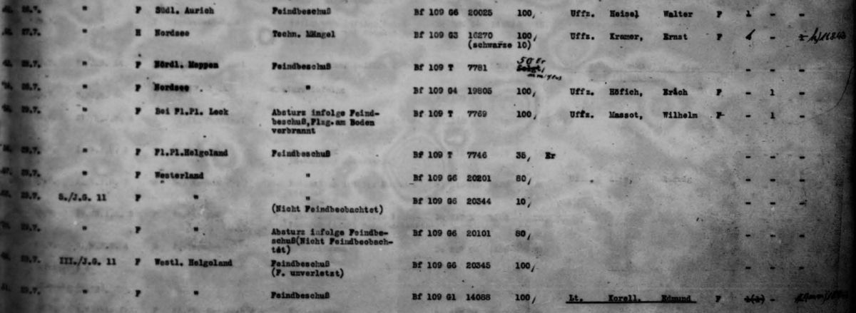 Weiterhin waren aber auch die Einheiten des Fliegerhorst Nordholz in Luftgefechte mit den einfliegenden Bombern verwickelt. Zu dieser Zeit Zeitraum lagen Teile des Jagdgeschwaders 3./ JG 26 "Schlageter" mit ihren Messerschmitt BF 109 G, sowie die 7. Staffel des 1./ NJG 3 mit ihren Messeschmitt BF 100 G4 Nachtjägern am Standort.