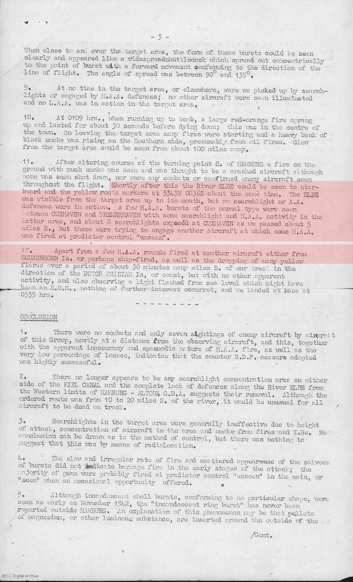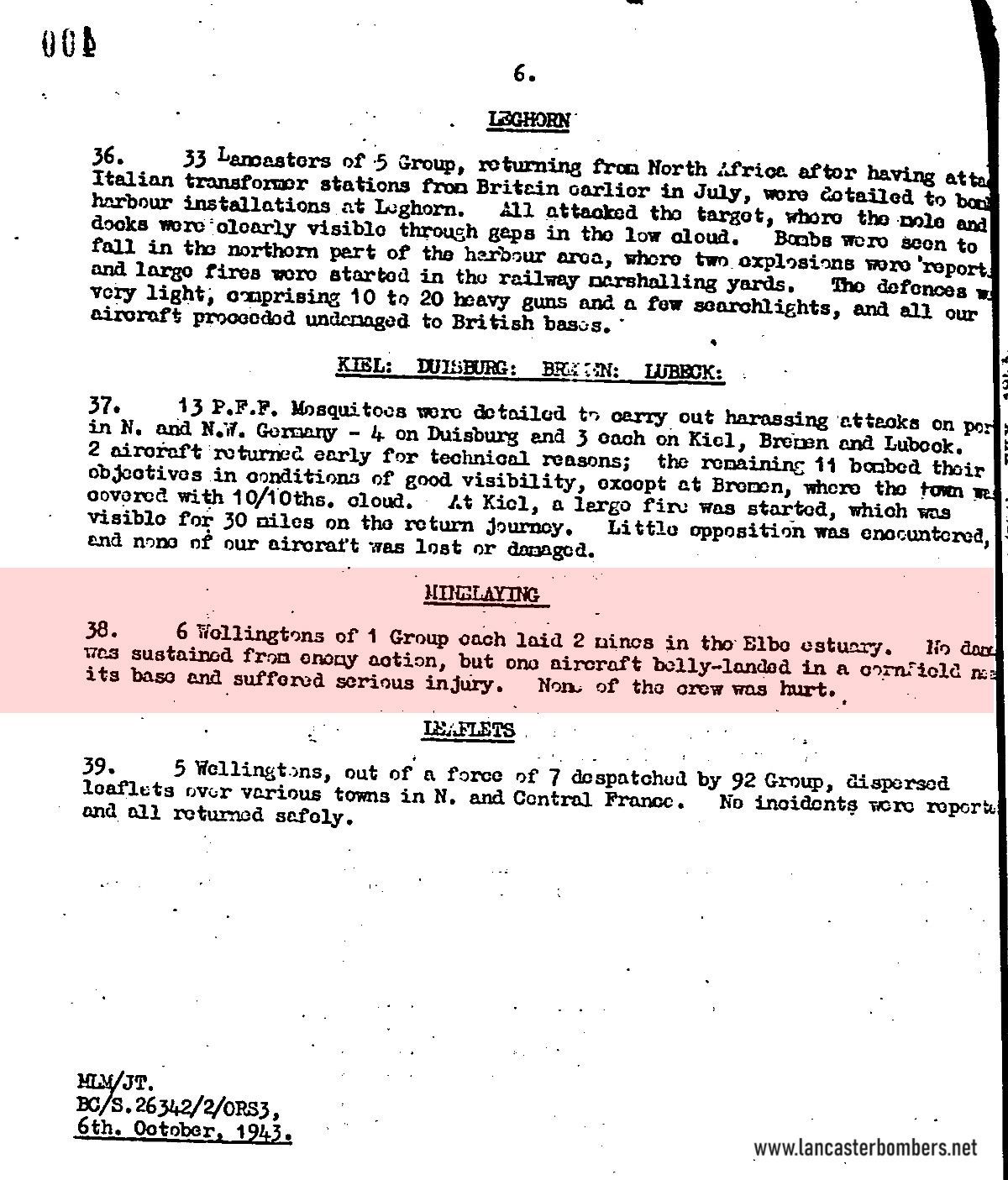 02/03.08.1943 - Nachträglicher Bericht des britischen Bomber Kommandos zum Luftangriff in dieser Nacht. RAF Night Report 391.