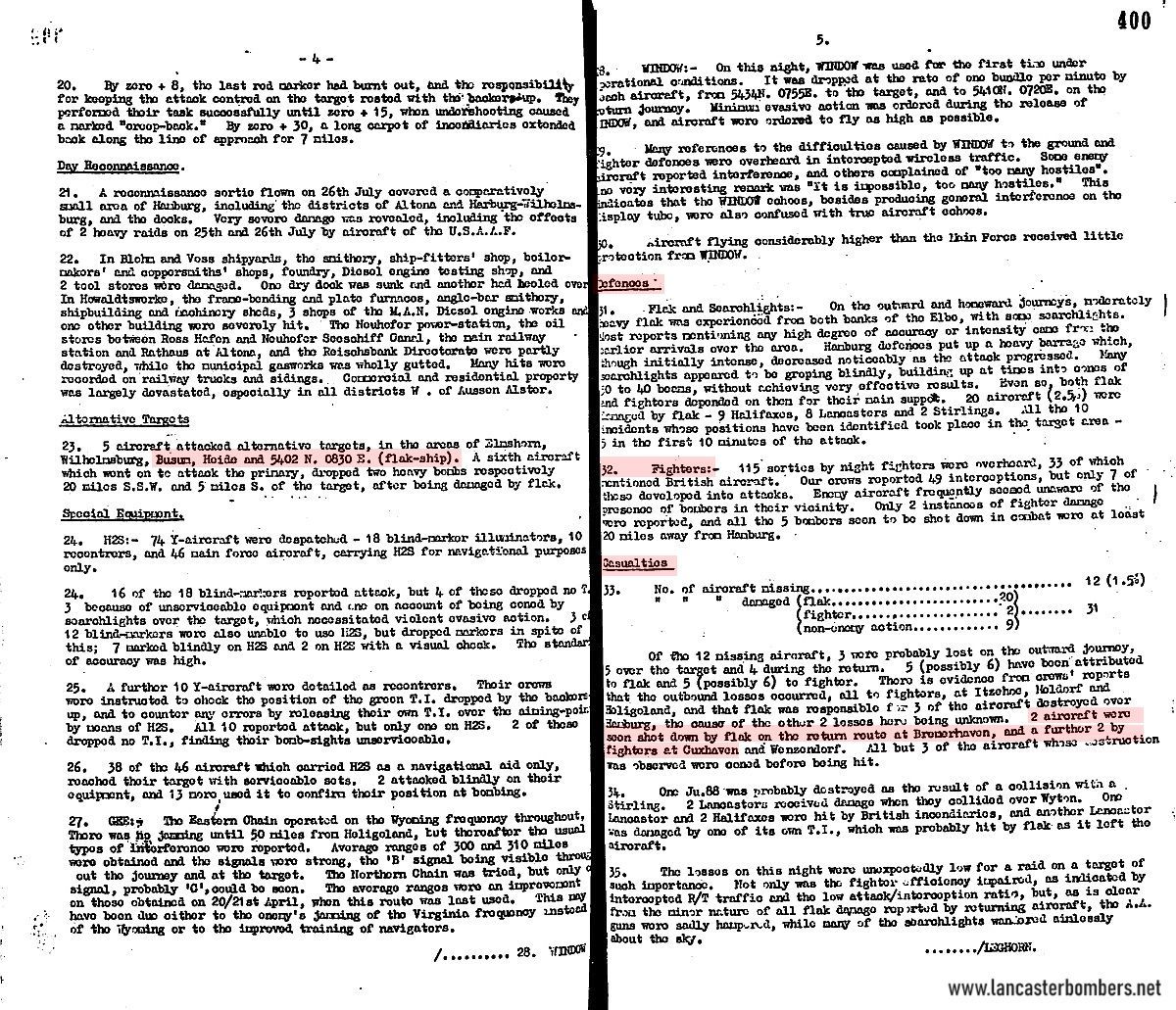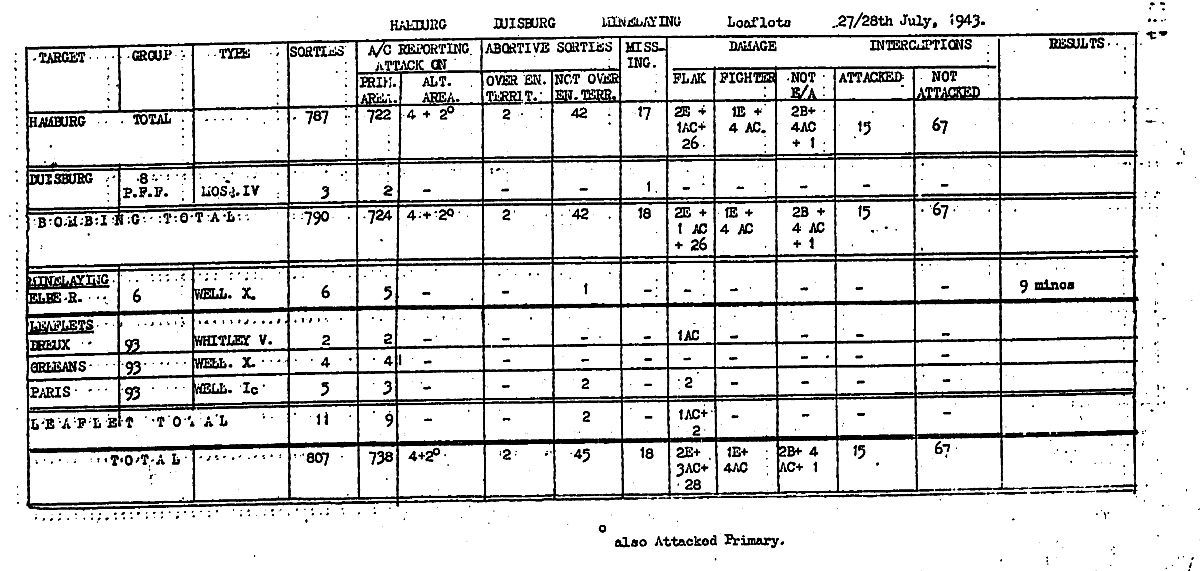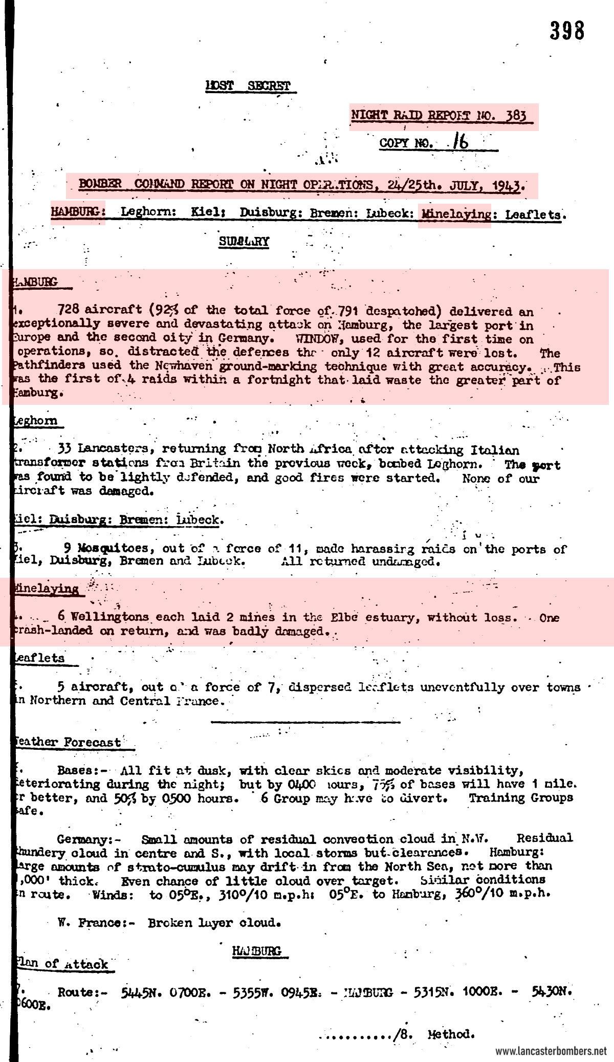 24/25.07.1943 - Abschließender Bericht des britischen Bomber Kommandos zum Luftangriff in dieser Nacht. RAF Night Report 383.