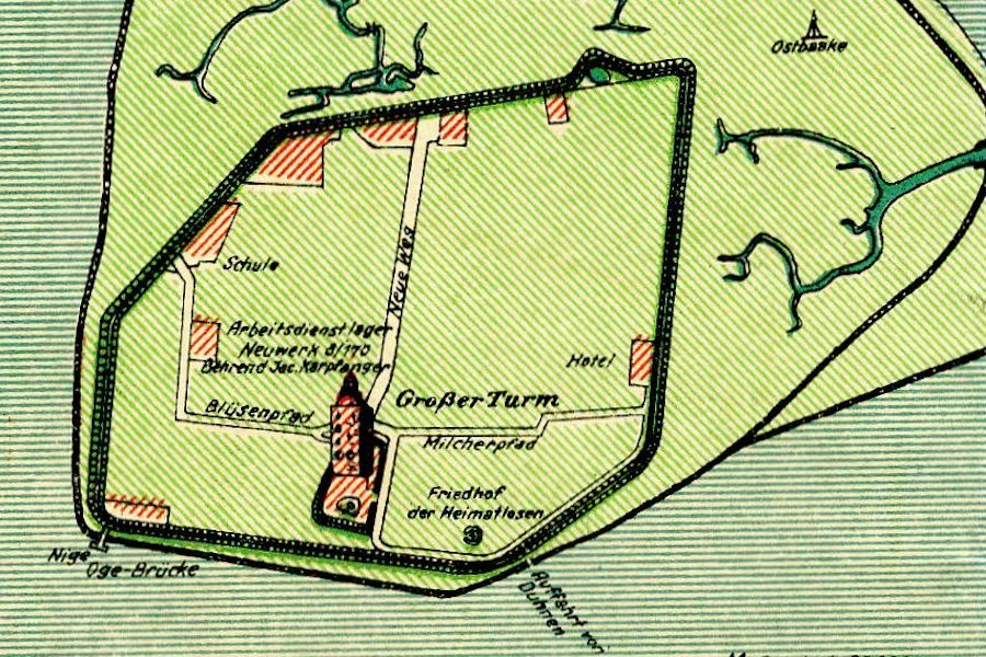 Das Lager befand sich im westlichen Binnendeichgelände der Insel Neuwerk.