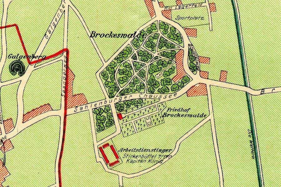 Das Lager befand sich direkt hinterm Brockeswald westlich des Friedhofs.