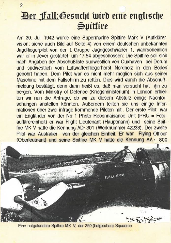 Der Hinweis der Royal Airforce über vermisste Spitfire an diesem besagten Tag, seinerzeit kamen drei Maschinen dafür in Frage. Das Flugzeug des Norwegers Lauritz Godo stürzte in den Niederlanden ab, wo er anschließend bestattet wurde.