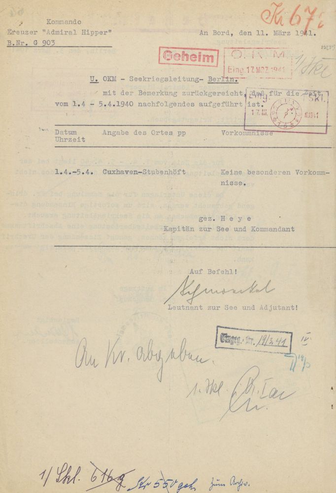 Kriegstagebuch des schweren Kreuzers "Admiral Hipper" während des