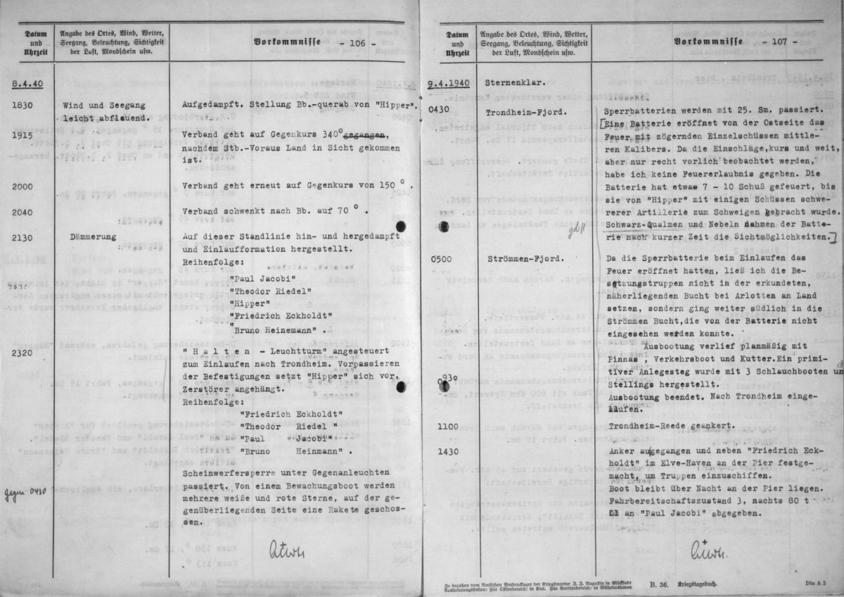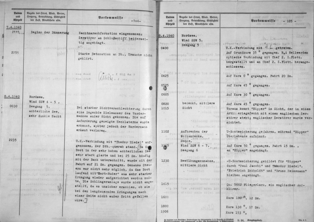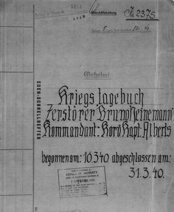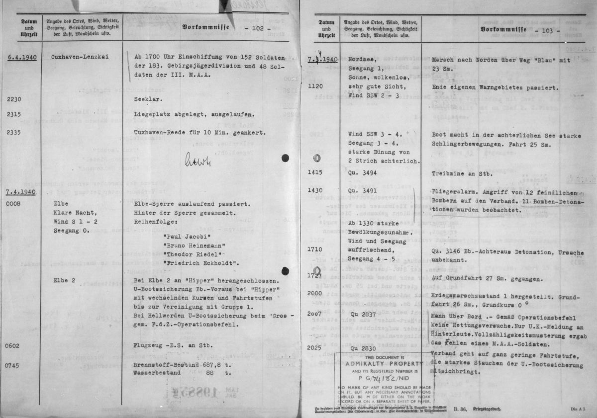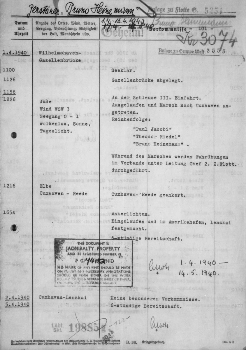 Kriegstagebuch des Zerstörer Z 8 / Bruno Heinemann während des "Unternehmen Weserübung"