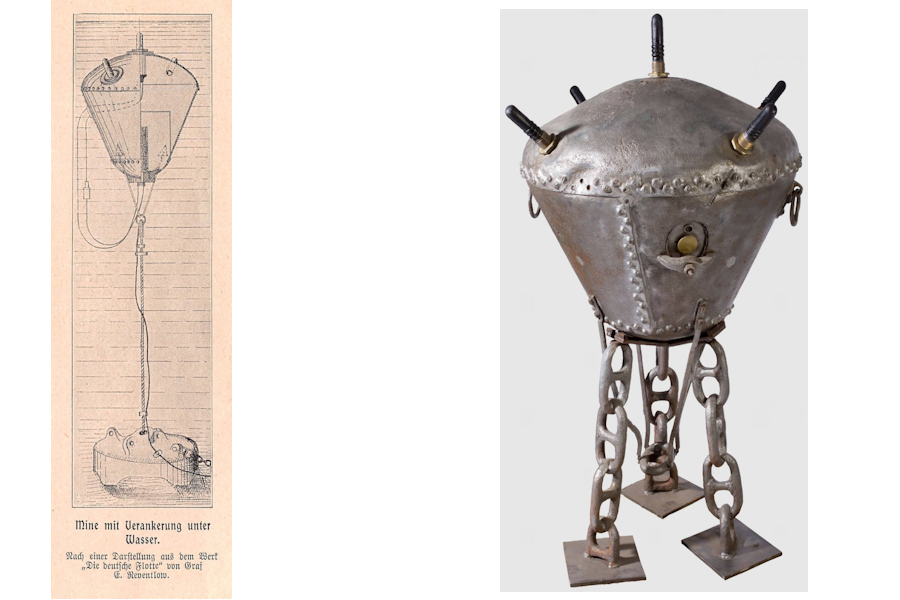 Bei der Mine handelte es sich um eine deutsche Ankerseilmine vom Typ C/77. Diese wurden seinerzeit vielfach als Sperre im näheren Küstenumfeld eingesetzt, um feindliche Vorstöße zu verhindern. Minenfelder befanden sich in der Jade vor Wilhelmshaven, quer vor den Ostfriesichen Inseln, vor den Niederlanden aber auch vor der britischen Küste. Es ist zu vermuten das die gesprengte Mine von weiter westlich hierher vertrieben wurde.